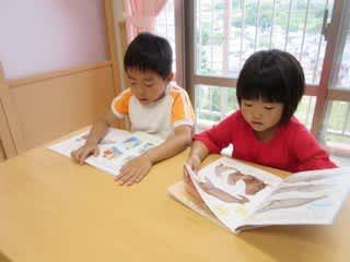 文字への興味関心を深めるだけではなく、登園後落ち着いて絵本に触れることで、静と動の活動のメリハリもつくようになります。