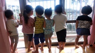 保育士から作業中は声が届かないことを聞くと「がんばれー」の視線に変わり…