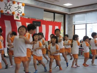 3~5歳児の子どもたちも踊りの出し物をしたり、職員さんの楽しい芸を見たりして