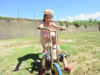 「えぇ〜お山はできんけんこっちに行くね♪」とキックボードを押してくれていました