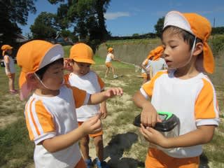 3,4,5歳児さんは、トンボにバッタを追いかけるのに夢中。