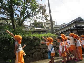 バス遠足の翌日は・・・天候回復 昨日はあんなに雨が降ったのに・・・ と落ち込んではいませんでしたが、晴れたのならば・・・と3・4・5歳児と交流の2歳児揃ってお散歩に出かけていきました。 園庭からは0・1歳児…