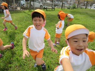 西浜グランドに行ってきました 運動会のリレーの練習を行った後は思い思いに身体を動かして遊びましたよ 仲良く手を繋いで「な~べな~べそこぬけ そ~こがぬけたらかえりましょ」 たくさん走りまわった後はワクワクお弁当 「神様 …