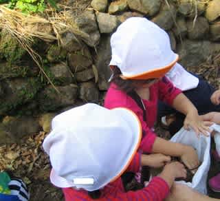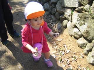 園周辺で活動中の1歳児さん。