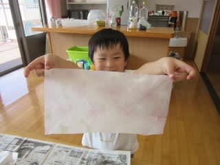 半紙を染めて、模様を作りました(^_-)