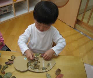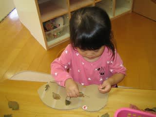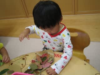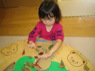 みんなとても集中して思い思いに落ち葉を張り、作品を完成させていましたよ(*^^)v