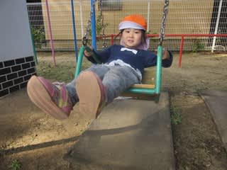 天まで上がれ~とばかりに元気にブランコを漕いでいた3歳児さん。