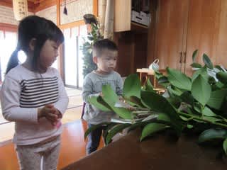今日は何をしたいですか?と質問するとお外で遊びたいです!とのことだったので全体お始まりの後はお外へ ゆっくりと長~い時間思い思いに身体を動かして遊びましたよ 綺麗なお花もみつけてニコニコの子ども達でした