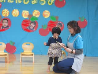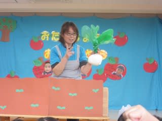 代表のお友だちからプレゼントを受け取ったあとは保育士による”おおきなかぶ”のお話があり、
