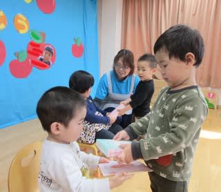 この日は、2歳児と4歳児のお友だちで電車遊び!! 力を合わせながらレールを作っていく中で、4歳児さんが「ここにはめて~」「上手ね~」など優しく声をかける姿も見られましたよ 来年度は、年長さんと年少さんになるお友だち。これ…