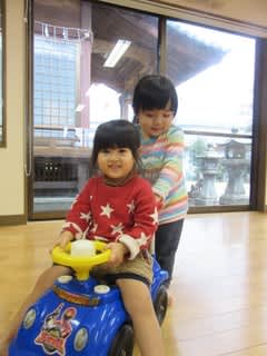 こちらは「押してあげるね」と2歳児さん♡