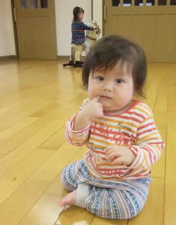 見ていた0歳児のお友だちが、私もするよ!と言わんばかりに