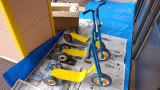 椅子はきれいにニスが塗ってあり艶々にキックボードは錆を落としペンキが塗られていました