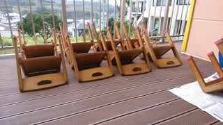 見覚えのある椅子とキックボード。「あ!新しくなっとる。」