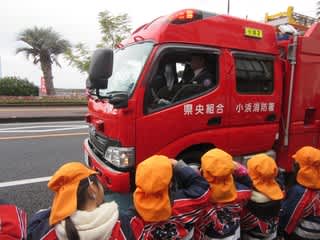 その後は、消防車や救急車、そして消防士、消防団員のみなさんの行進を見学。