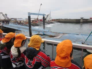 迫力ある放水には子どもたちも歓声をあげていました。