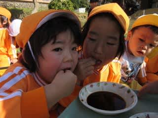 園庭へ行くと・・・ 「一緒にブランコのろ~」と半分席を空けてくれたお友達と、にっこり笑顔でうなづいたお友だち♪ とてもほのぼのしい会話が見られました(^▽^)/ そして、たくさん遊んだ後は、給食の時間 ちょっとだけ気分を…