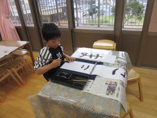 新年に入って初めての習字教室が行われました。保育園での習字教室も残り3か月となります。