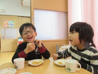 「大豆は枝豆が枯れたやつ」等、自分が知る大豆のことを話しながらのおやつの時間となりました(*^^)