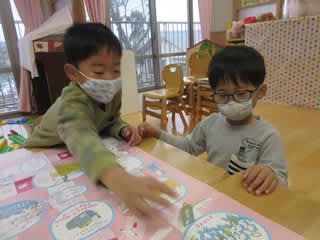 数や文字に興味が出てきた子どもたちは、止まったマスの言葉を懸命に読んで、次へとコマを進めていました。
