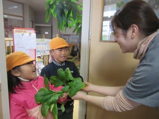 手渡ししてもらった栄養士も「ありがとう!みんなが育てたカブだから、お給食に使わせてもらうね~」