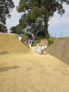 自分で作った物はやはり特別なものですね(*^^)凧を手に園庭を走り回る子どもたち。0歳児のお友だちも凧上げに挑戦しましたよ♡