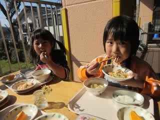 天気が良い日はテラスで昼食(^^)