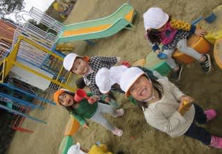 こちらは砂場遊び中の皆さん、カメラを向けると笑顔で答えてくれました♡