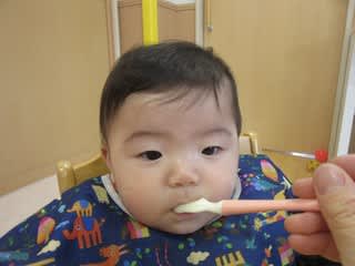 「あーん、パクッ」の声掛けに大きく口を開け、食べてくれるお友だち。