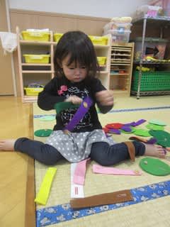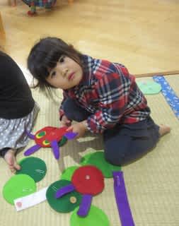 いつもは元気いっぱいの1歳児さんも集中して静かな遊びの時間となりました(*^_^*)