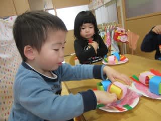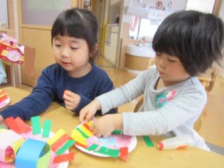 製作中にも、お友達との関わり・協力する姿も見られました。何ができるかはお楽しみに(*^^*)