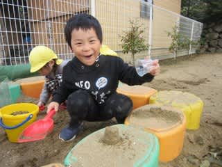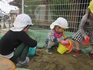 雨が止み、お日さまが顔を出しました 運動場で遊んでいた2歳児のお友達が見せてくれたのは・・・カタツムリ 雨上がりでカタツムリもお散歩に出てきたようですね みんなでしばらく観察中・・・ こちらでは、お団子屋さんが開かれてい…