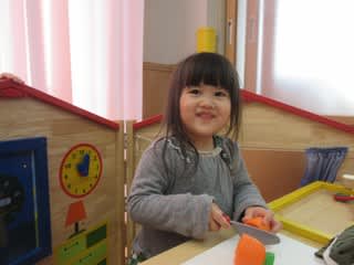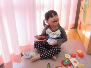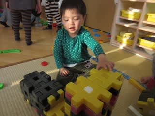 「ご飯ですよ〜」とお料理したりしていましたよ(*^^)v 一方男の子はブロック遊びに夢中です♪