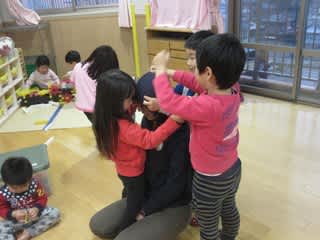 こちらは、先生の肩トントンしてやるね~と肩たたきをしてた子どもたち。