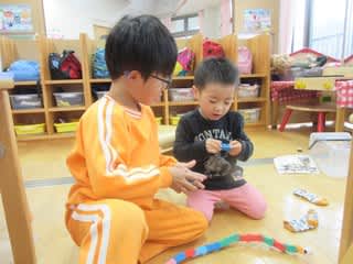 外は少し冷え込んでいましたが、園周辺を散歩しました。 ちょっと寒いけどこうしていればだいじょうぶ。 小さな手をつなぐ姿がほほ笑ましいですね(*^_^*)