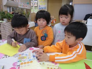 先日の製作の様子です。 この日はサンタさんを作りました! パーツは全て自分たちで貼って・・・ のりの感触を楽しみながら作ることが出来ましたよ(*^_^*) 少しずつサンタさんのこともわかってきて プレゼントの楽しみも…