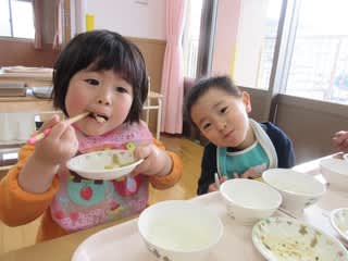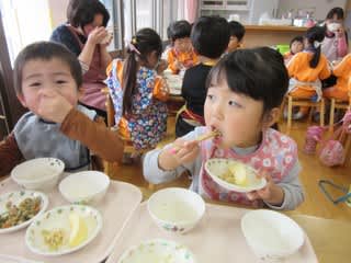 昨日はお弁当の日でした。 朝から登園してきた1・2歳児の子どもたちは、ニコニコ顔。 おまちかねのお昼の時間です(*^。^*) どれから食べようかな~ おいしいね~ もぐもぐ、パクパク お弁当箱の中は、見る見るうちに空っぽ…