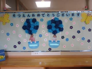 卒園児巣立ちの時、その門出をお祝いする気持ちで会場設営を行いました。