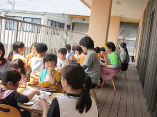 そろそろ梅雨入りしそうな感じですね今日は雨の日の子ども達の活動を伝えたいと思いますこちらは、一歳児です。テラスの前でかけっこの練習の後の様子です三輪車などで遊びます 元気一杯の二歳児は… ブロックやぬいぐるみで遊びます保…