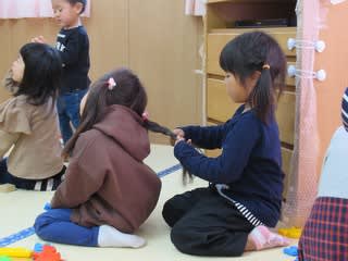 夕方の時間、支援センター利用児童が園児の髪を可愛く三つ編みにしてくれていましたよ(*^^)v