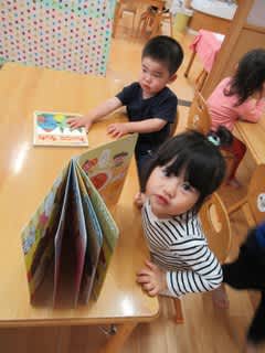 0歳児さんがお兄さん、お姉さんたちの部屋に遊びにきました!! 手の届くもの、普段見ないものなどいろんなものに興味津々。 自分の手で触ってみたくてたまりません(^^) 5歳児さんは何やら製作中。 納得いくまで、手の込ん…