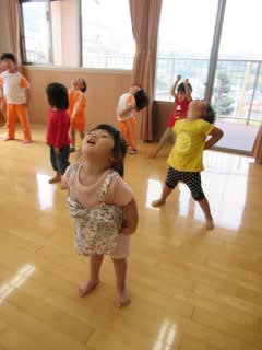 お遊戯会が10日後に迫り、舞台を使っての練習も始まっています 背景の色も何色が曲にピッタリか考え中です 他のお友達は観客役。 カメラを撮っている子もいますね~ こちらは合唱の練習。 明後日は予行練習も控えています 楽しみ…