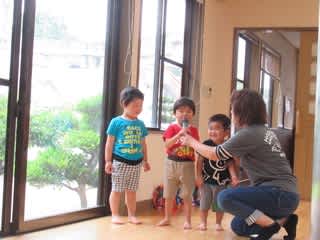 今日はひまわりテレビより取材に来られました。 一人ずつ「おおっくなったら・・・・・・」 とコメントを残しているところです。 みんなの前で、しかも、大きなカメラを構えられて・・・ 緊張しましたが、中には笑顔でポーズを決めて…