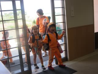 頑張って、帰ってきた5歳児さんを見て、「おかえり~!!」と子どもたち&保育士たち。