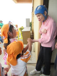 10月11日、第10回八幡会スポーツ大会が開催されました。 いよいよ選手入場です。 テーマは「共につなごう 笑顔の輪」 5歳児さんが選手を代表して、選手宣誓をつとめてくれました。 ちょっぴり緊張しましたが、上手でしたよ(…