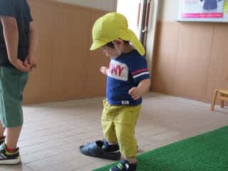 靴を履いて準備万端!と思っていたら、靴箱にあった大きなスリッパを・・・
