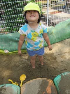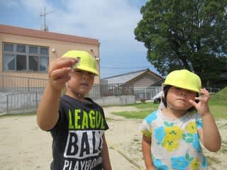 園庭には靴を脱いで直に砂の感触を楽しむ子、網を持って来てチョウチョを追いかける子、