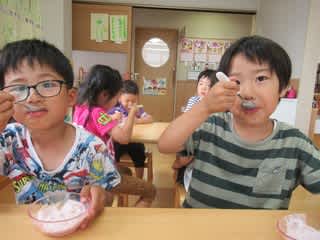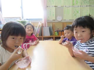 3時のおやつにはフルーチェムースを食べ涼をとりました(*^^)v