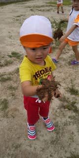 中々抜けず、悔しい子は落ちてた泥を掴んで見せに来てくれました