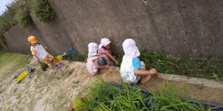 保育士が草むしりをしていると